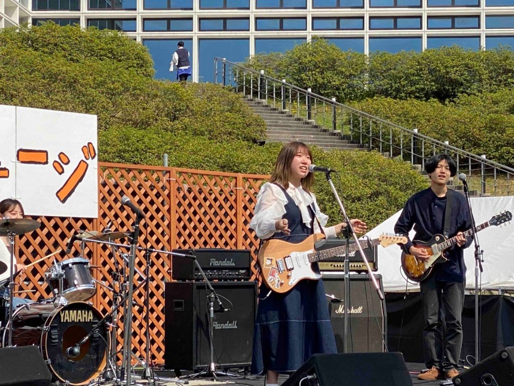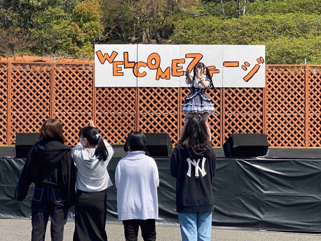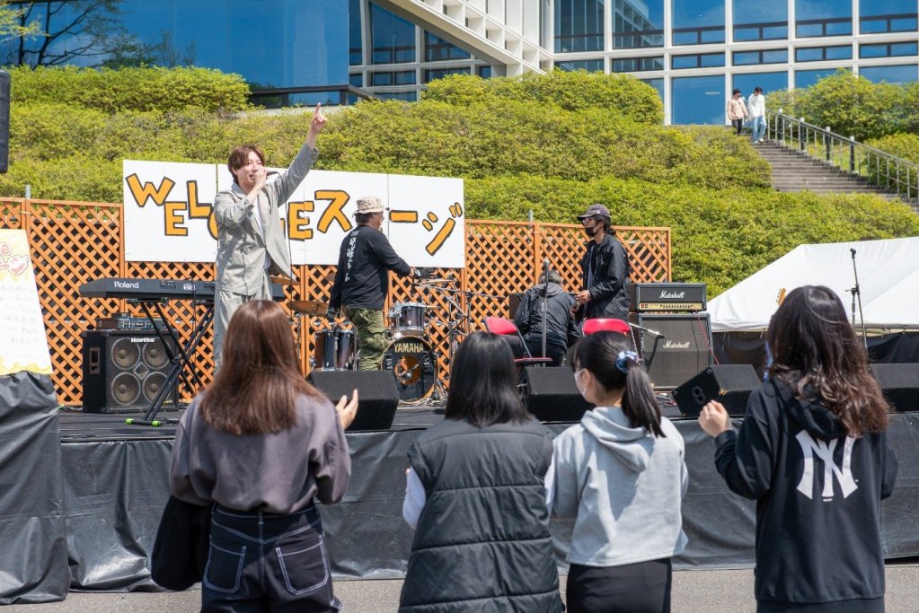 屋外には特設ステージ「WELCOMEステージ」を設置して、ポップスギター部とフォークソング愛好会のLIVE、K-POPダンスのSHOWCASEなど、先輩たちが日頃の活動成果を披露しました。また、新入生歓迎会を盛り上げるために、大阪のシングソングライター「名迫 僚太 さん」や地元名古屋で活躍するアニソンシンガー「愛未 莉叶 さん」がスペシャルゲストとして参加していただきました。