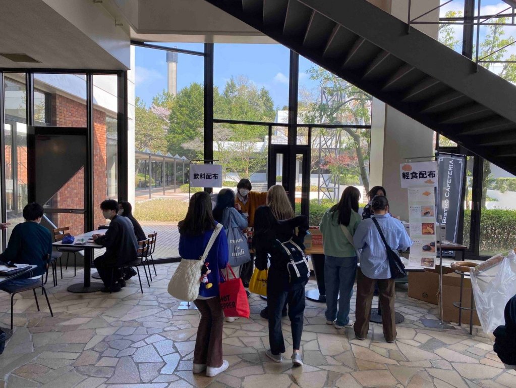 学生食堂「コミュニティパビリオン」内、SORA CAFEとハナノキパントリーでは体育会系、文化会系のクラブ・サークルが集結し、先輩学生が新入生に向け活動紹介や個別相談を行いました。特別企画ではクラブ紹介に参加した新入生に対して大抽選会を実施しました。新入生がこれからキャンパスライフを謳歌するために学生会執行部の先輩が厳選して選んだ賞品やグッズが多くの新入生に渡りました。