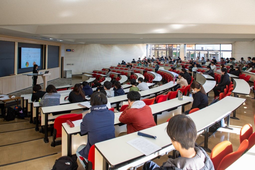 発表会は司会進行から会場設営まで学生主体で運営されます。4年生が大勢の前で堂々と発表する姿を見た下級生からは、「発表内容や話し方がすごくわかりやすく、自分も同じ場に立てるように勉学に励みたい」という声が聞かれました。質疑応答では、発表を受けて様々な視点から質問や意見が飛び交い、活発な意見交換が行われました。