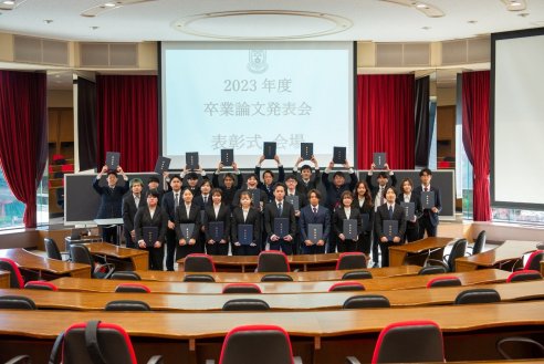 12月6日(水)日進キャンパスにおいて、「卒業論文発表会」が開催され、総勢1,200名を超える学生が参加しました。各セミナーの代表者26名が自身の決めたテーマに基づき、2年次から3年間に渡って研究を重ねた成果を発表しました。