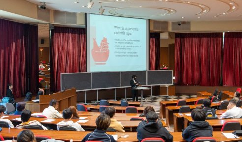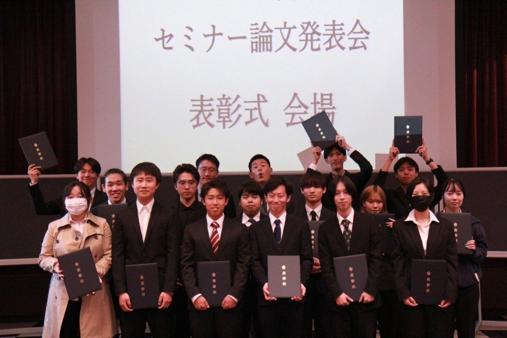 質疑応答では発表内容に対する活発な議論がなされ、「論文の着眼点が面白かった」という声や、「自身の論文にも、もう1つ比較対象を作って考察したい」という声が聞かれました。3年生のセミナー代表者が大勢の聴講学生の前で発表する姿を目の当たりにした1年生からは、「身近な疑問に気づくことが論文のテーマ選びで大切だと思った。」という声や「自分も先輩方のように、自信を持って発表できるようになりたい。」と感想が聞かれました。