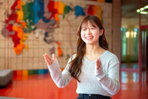 2年生の菱田美月さんは、海外で働きたいという思いや、アジア文化への関心をきっかけに名古屋商科大学 国際学部へ進学しました。留学に向けた準備や、日々の学び、そしてサークル活動についてお話を伺いました。