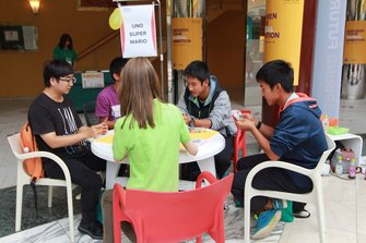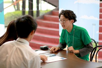 個別相談では、入学試験、入学後の学び、学生生活、留学・海外体験や就職活動について、各部門の職員と実際に海外プログラムなどに参加した学生がペアで相談に応じました。