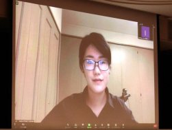 本学では昨今の感染症対策に配慮して4月より全ての科目をオンラインによるライブ型遠隔授業で実施しています。本学の遠隔授業では録画配信ではなくライブ型で行われており、学生と教員がコミュニケーションをとりながらアクティブラーニング形式の双方向型で授業が展開されています。他大学が授業開始日を遅らせる中、本学が学期を遅らせることなくライブ型の授業を全面的に採用できたのは、今回の問題に対する学生や教職員の協力に加え、1985年より実施しているパソコンの無償譲渡制度があったからです。学生は普段から様々なシーンでパソコンを活用しており、今回の体験談発表のように普段から授業や学生同士の打ち合わせなどでビデオ会議システムが盛んに活用されています。