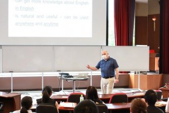 また、本学のネイティブ職員による国際交流会では「English for Daily Life」を題材にConversation(会話)の体験を行いました。事前に用意されたテキストに従って、ネイティブ職員との会話を通じた語学学習を体験していただきました。本学では語学学習施設や各部署のネイティブ職員、提携校から留学する交換留学生と日常的に英語で会話できる環境やシーンが沢山あります。また、全ての学部で個々の学生のレベルに応じた英語学習のプログラムや自学自習のサポートを受けることができます。