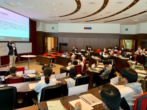 今回のオープンキャンパスでは、北村貴先生によるMBA流のケースメソッドによる参加型(アクティブラーニング)体験授業が実施されました。今ニュースでも話題のオリンピックの聖火リレーを例にあげ、伝統文化とジェンダー平等の狭間であなたならどうするか?を参加者全員で議論しました。ケースメソッド授業が初めてだった高校生もいらっしゃる中、積極的に挙手・発言いただく姿が見受けられました。名古屋キャンパスの授業の特徴である「参加者全員で授業をつくる」ことを体感いただけたのではないでしょうか。
