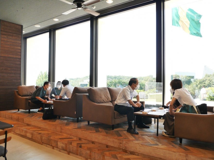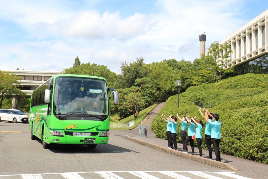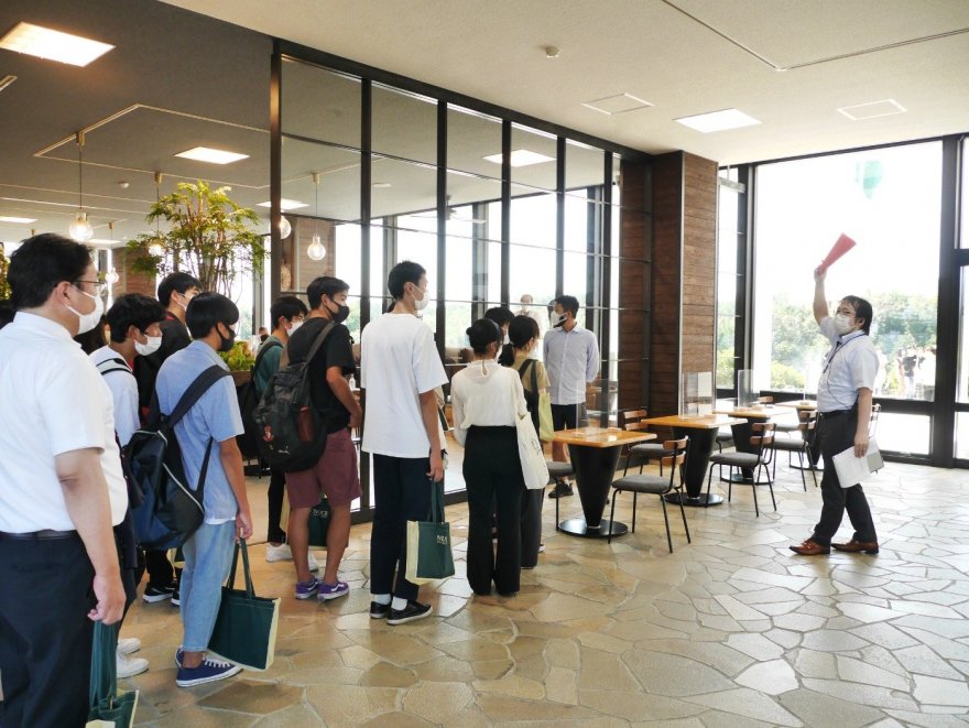 愛知県私大No.1の敷地面積を誇る自然豊かな日進/長久手キャンパスをご案内。アクティブラーニングに適した造りの教室や20万冊以上の蔵書を保有する中央情報センター、お洒落なカフェテリアSora Cafeなどをご覧いただきました。