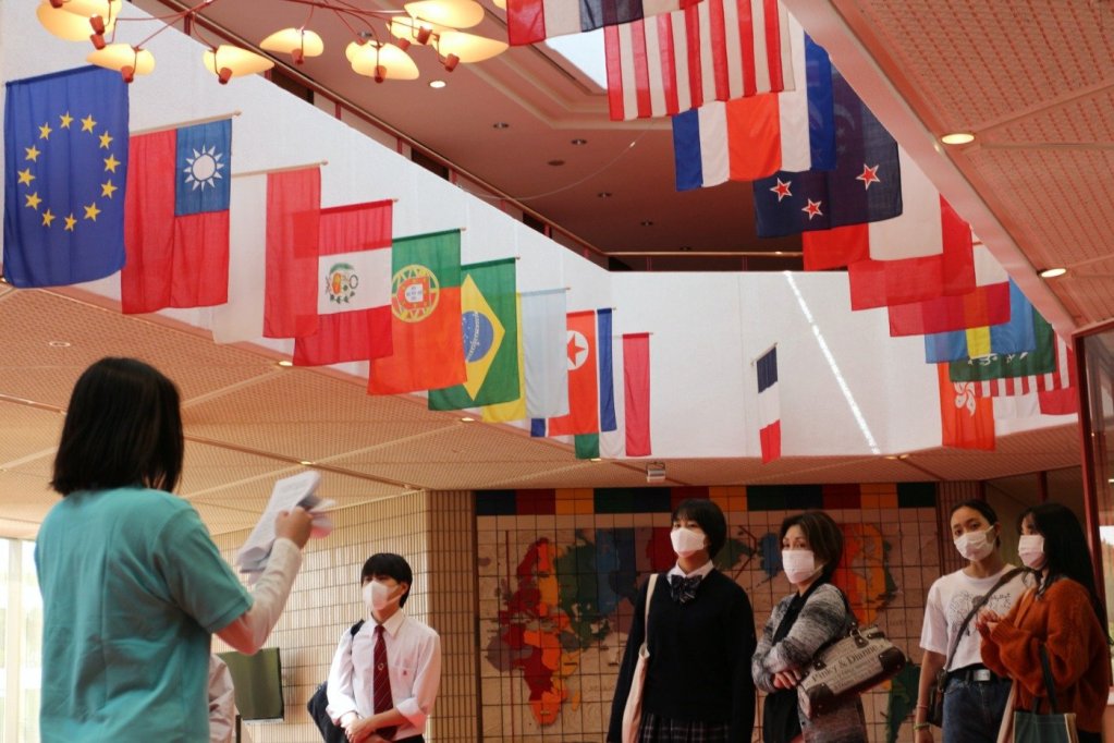 磯野英治教授には、国際学部の魅力をお話いただきました。国際性の高い本学の教育の特色に加え、多彩な留学制度、学内で実現する国際交流などについて、詳しくご紹介しました。