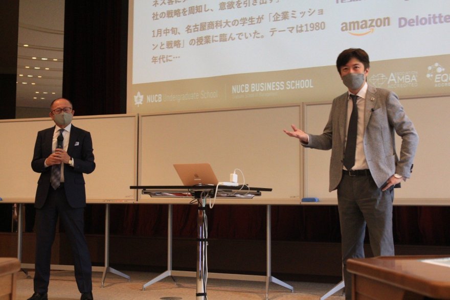 三大国際認証(AACSB、AMBA、EQUIS)全てを取得した国内唯一の教育課程である名商大のMBA教育。今回のオープンキャンパスでは、横山研究科長(元立命館APU副学長)と栗本博行学長による特別講演を開催。学部および大学院の全ての授業でハーバード流ケースメソッドを中核に据えた本学の教授法や、本学が提供する「世界標準の経営教育」についてよくご理解いただけたかと存じます。