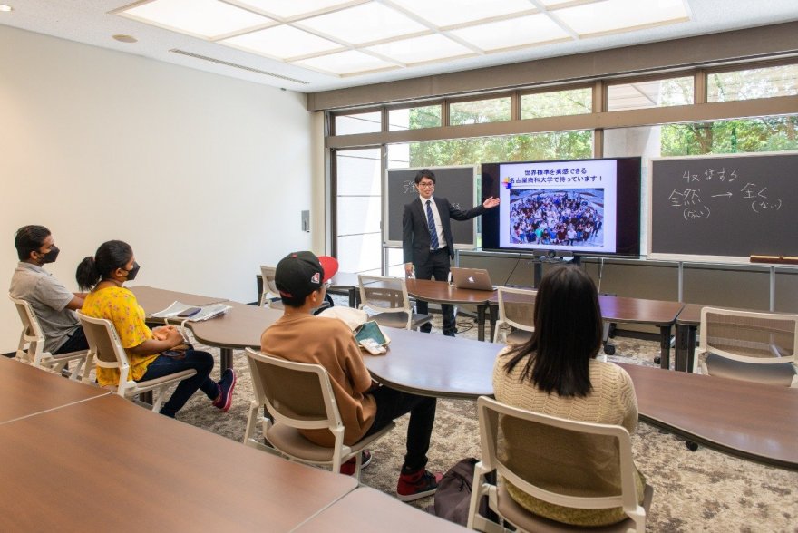 外国人留学生対象のプログラムとして日本語の体験授業と留学生入試説明を行いました。体験授業では和語と漢語 をテーマに、レポートライティングやフォーマルなかたい話し言葉として使用する漢語について学びました。甲賀先生の楽しい授業や面接対策のアドバイスで、和やかな雰囲気で行われました。