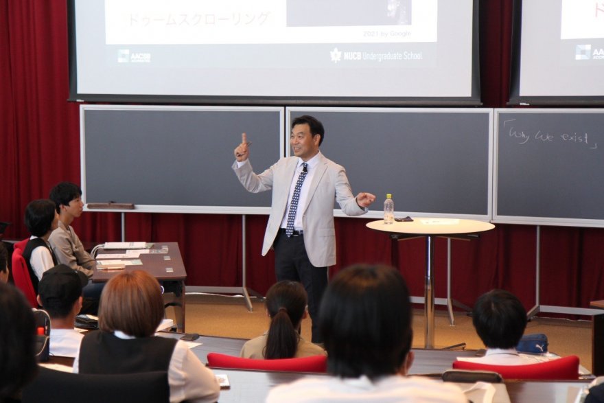 三大国際認証(AACSB、EQUIS、AMBA)全てを取得した国内唯一の教育課程である名商大のMBA教育。今回のオープンキャンパスでは、名古屋商科大学の教育について、横山研究科長(元APU副学長)と栗本博行学長による特別講演を開催。探究型学習としてのケースメソッドに加えて、世界標準の経営教育についてのご紹介しました。