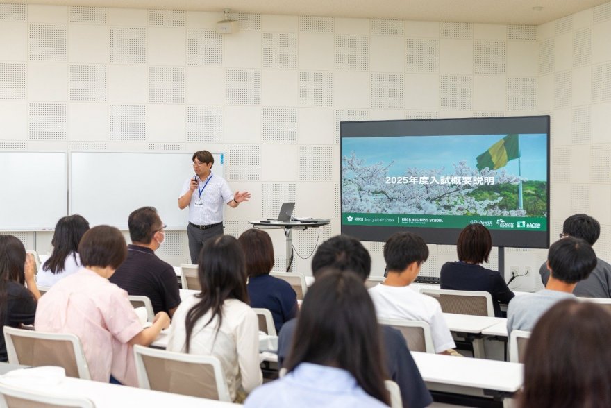 2025年度入学試験制度について、いち早くお伝えいたしました。昨年度からの変更点や合格を勝ち取るためのポイントなどを詳しく説明。 参加者の高校生と保護者の方はそれぞれご関心のある入試制度に関して、メモを取られ真剣な面持ちでご参加いただきました。