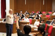 Niculina Nae教授の体験授業では、ケースメソッドを用いて"at"、"in"、"on"などの時間を表現する際に出てくる前置詞について学びました。授業ではビンゴゲームを使って英語表現を学ぶなど、楽しく授業を行う工夫が取り入れられていました。英語でのより良いコミュニケーションをとるために、非常に大切な内容を学べたのではないでしょうか。
