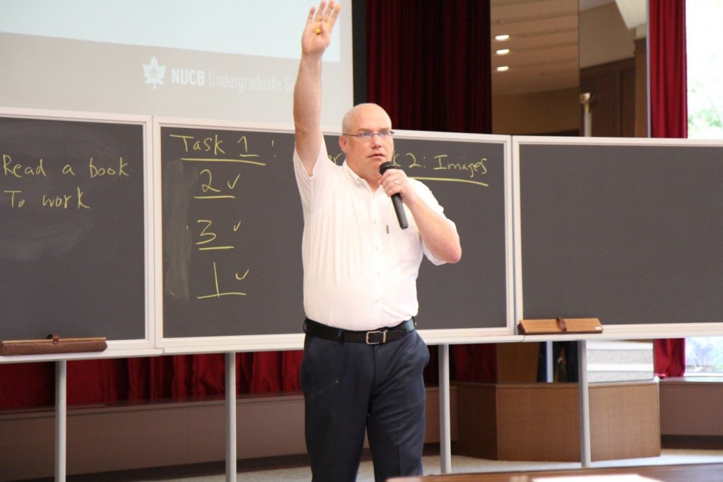 三大国際認証を取得した国内唯一の教育課程である名商大のMBA教育。横山研究科長(元APU副学長)より、ケースメソッドと世界標準の経営教育についてご紹介しました。