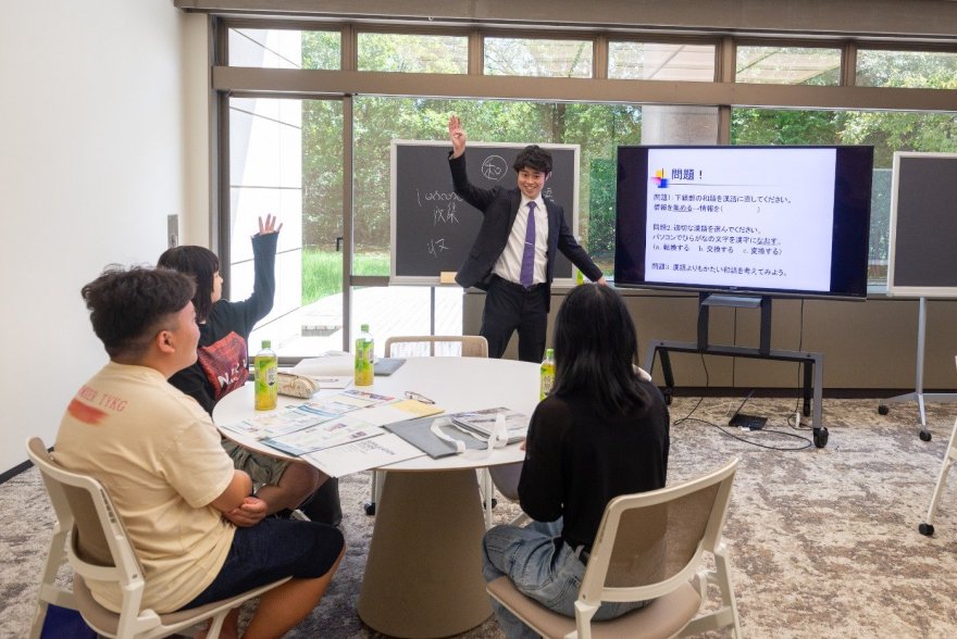 「北海道と沖縄のどちらを旅行先として選択するのか?」をテーマに授業を展開。それぞれの気候や観光地など、参加者からは活発な意見が出て本学の学びの特徴を体感いただけました。