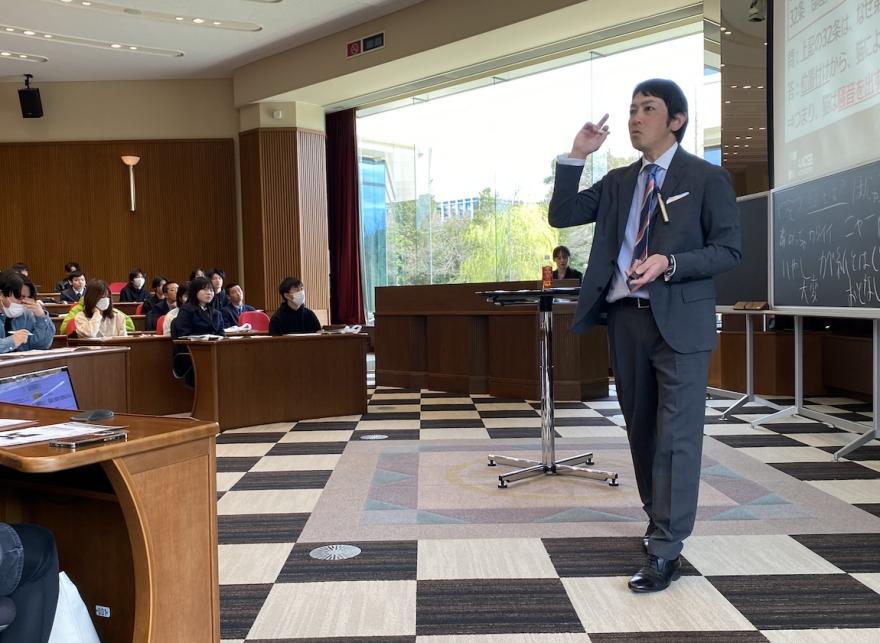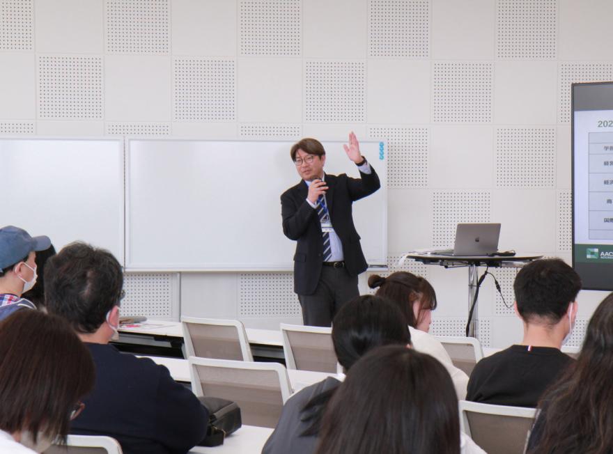 三大国際認証(AACSB、EQUIS、AMBA)全てを取得した国内唯一の教育課程である名古屋商科大学のMBA教育。今回のオープンキャンパスでは、名古屋商科大学の教育について、横山研究科長(元APU副学長)と栗本博行学長による特別講演を開催。探究型学習としてのケースメソッドや世界標準の経営教育についてご紹介をしました。