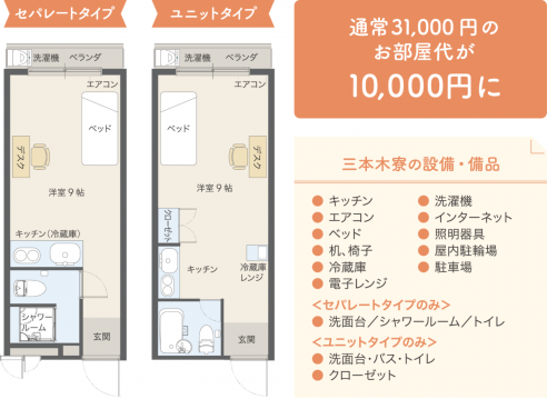 <三本木寮/日進市米野木町(ワンルームタイプ・家具家電付き)>