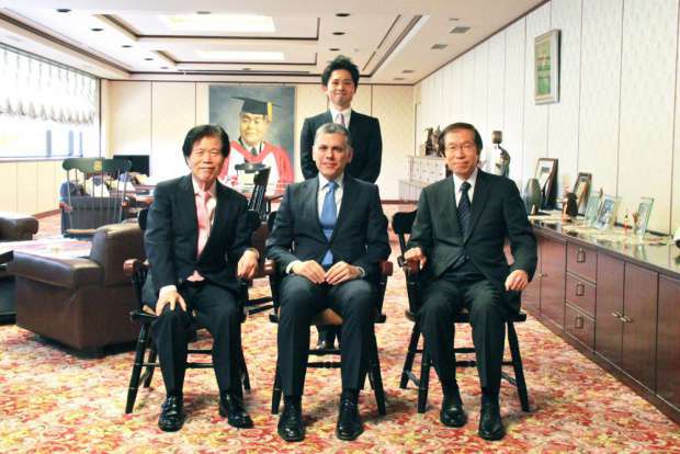 日進キャンパス | トルコのコチ大学より、副学長先生が来学されました。 2014/04/08 Tue #国際認証留学 #名古屋商科大学 #学部 トルコの提携校であるコチ大学より、副学長であるBaris Tan博士が来学されました。桜が美しい日進キャンパスで、今後の提携活動の更なる活性化や、大学の国際化に関する様々な施策や情報提供を行いました。自然豊かな日進キャンパスはコチ大学に似ているとのことで、充実した学修環境に関して活発な意見交換がなされました。