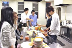 ユースホステルでは、国籍や性別も様々な仲間たちと夕食を作ったり、後片付けなども協力しながら行います。本合宿では、いち早く参加者同士でイメージしながら、楽しく体験をするというものです。