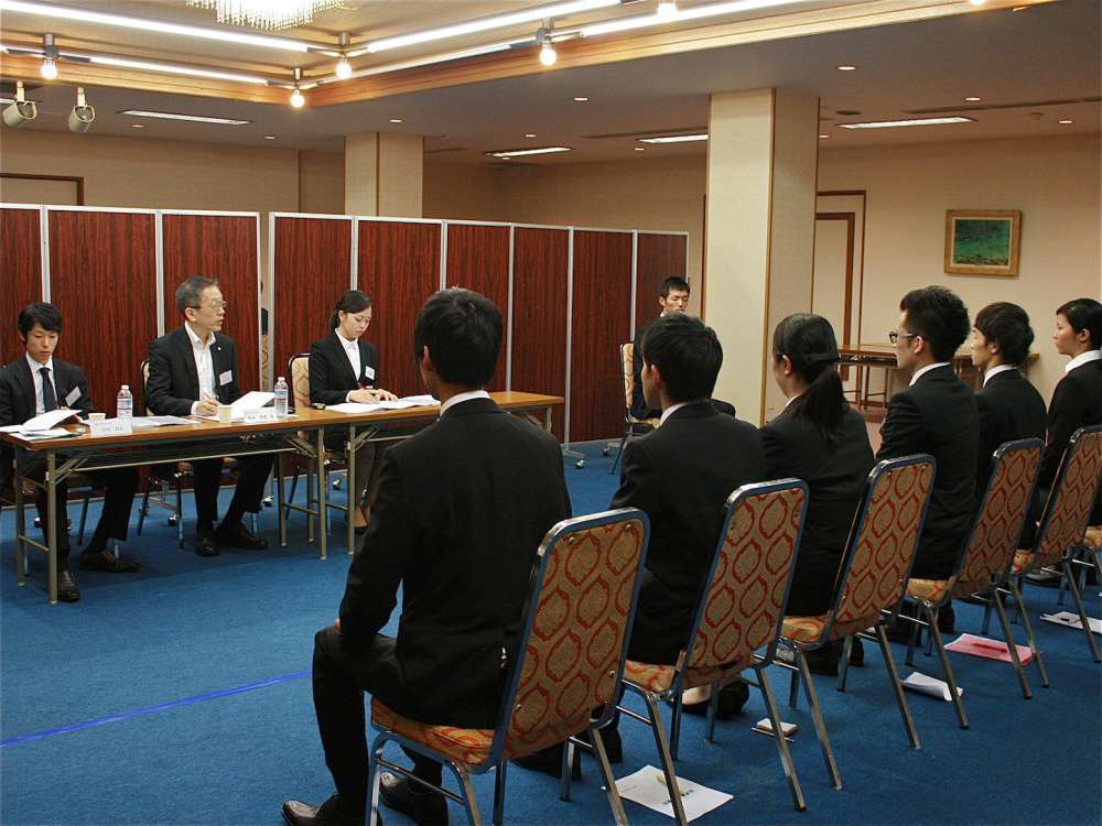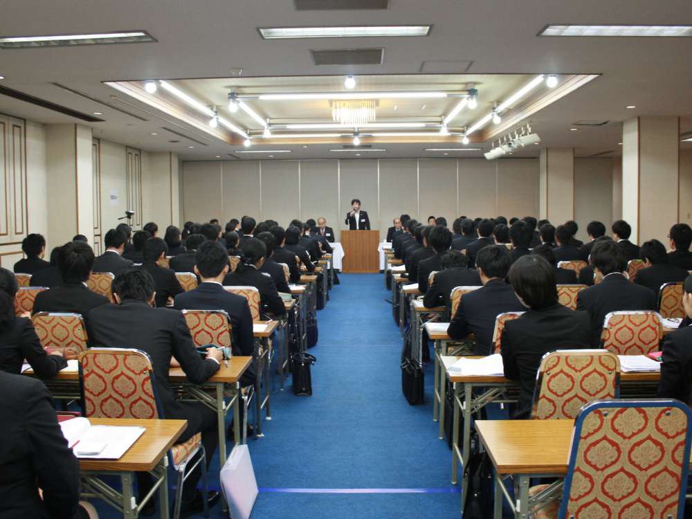 この研修会は30年以上の伝統があり、3年生の「意識改革」を目的とした1泊2日の集中研修です。本番さながらの模擬集団面接、模擬個人面接、模擬グループディスカッションの実践をとおして、就職活動において重要視される「第一印象」を磨き上げます。