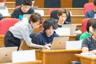 名古屋商科大学は、経営課題を自らの視点で考え、解決する力を養う「ケースメソッド授業」を全学的に採用しています。職員らはHakeem先生の「International Management」とGoi先生の「Business Model Design 」の2つの授業を見学しました。授業にはエジプトからの留学生も参加しており、彼女らが授業を受ける姿に興味津々の様子でした。名古屋商科大学は英語で学ぶことが可能な学士課程「Global BBA」を設置。世界35カ国以上から集う国際学生とともに学ぶことができる環境は「世界標準の経営教育」であり国内外で高く評価されています。