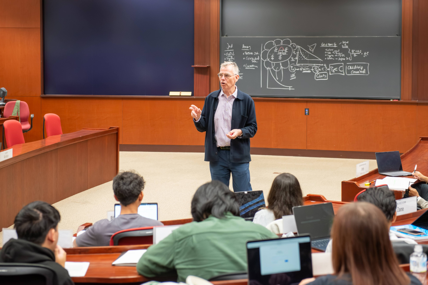 11月3日(火)から7日(金)にかけて、名古屋商科大学の客員教授であり、世界トップクラスのビジネススクールIMD(スイス)の経済学・経営政策の名誉教授であるRalf Boscheck氏による集中授業を開講しました。Ralf Boscheck教授は、戦略、経済、政策を専門分野とし、30年にわたる研究では、企業の競争優位性の評価や、企業利益と社会価値の創出との重要なバランスに焦点を当てています。特に、企業が持続可能な取り組みを行いながら利益を上げることを妨げている規制上の課題を明らかにするプロジェクトに取り組んでおり、グローバルな視点でビジネスと社会の関係性を探求しています。
