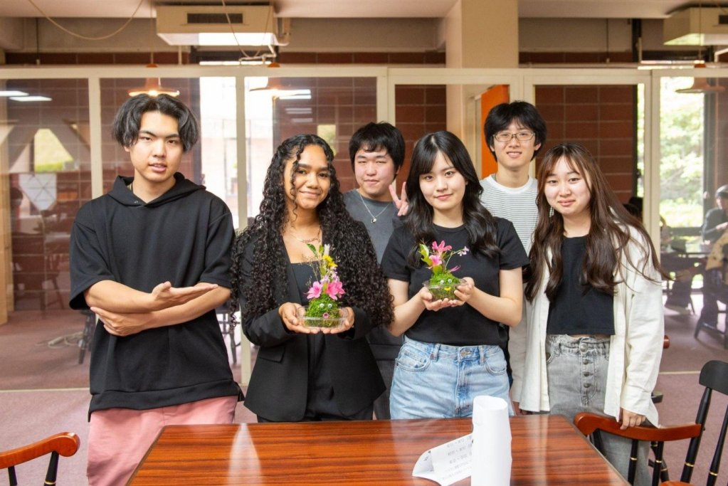 LE+プログラムの一環として、学生たちは苔玉について学ぶプロジェクトを実施しました。このプロジェクトでは、苔玉の歴史や文化的意義についてグループで調査し、その成果を英語にて発表しました。発表後には、実際に苔玉を作成するワークショップが開催されました。苔玉作成後には、各自が制作した苔玉について、そのテーマや制作時に込めた思いを発表し合いました。チームワークと創造力を発揮し、笑顔に溢れながら苔玉作りを楽しむ学生たちの姿が見られました。