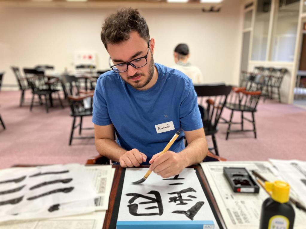 世界の留学生が日本の心に触れる—書道体験イベントを開催