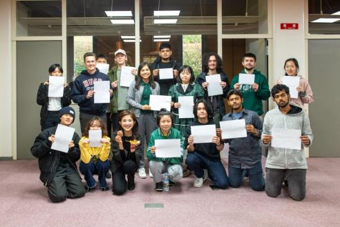 11月12日(水)、本学では留学生を対象とした「俳句体験イベント」を開催しました。本イベントは日本文化への理解促進、および異文化交流の活性化を目的として実施されたもので、多くの留学生が参加し、日本人の学生と共に俳句づくりを通じて日本の伝統文化に触れました。