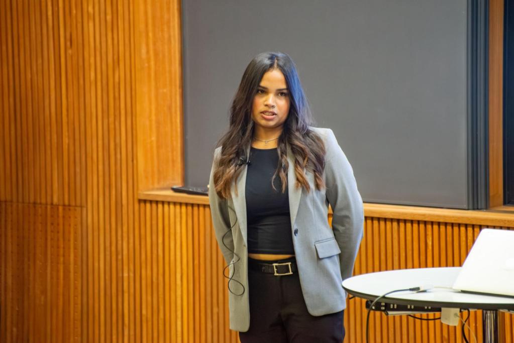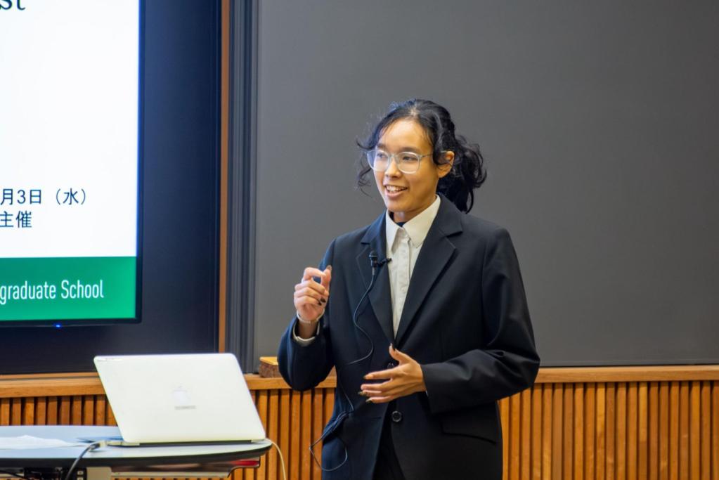 今年は、さまざまな国にルーツを持つ1年生から3年生までの9名の留学生が発表者として登壇し、オーディエンスを含め約150名が参加する盛大なコンテストとなりました。当日は、国際学部の学生が運営スタッフとして協力し、多くの学生・教職員が参加しました。