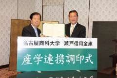 大学の研究成果等を地域社会へ還元し、地域社会の発展に貢献することを目的として、瀬戸信用金庫と産学連携協定を締結しました。本学の中小企業診断士養成コースのコンサルティング実習を活用した経営課題解決に向けた支援、研修・セミナー等への講師派遣などを行います。
