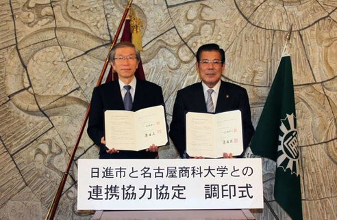 本学と日進市は、学生・市民主体の地域活性化等を目的とした包括的連携を行うことで合意に達し、平成23年2月2日に調印式を執り行いました。