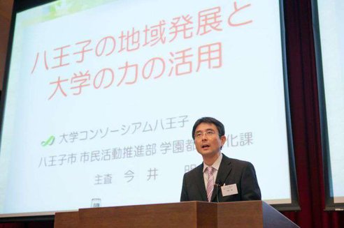 11月19日(土)の13時半から17時まで伏見キャンパスで本年度の就業力シンポジウムを開催いたしました。当日の来場者は85名で、多彩な聴衆の方々がご関心をもって出席してくれました。昨年度に引き続き、2年目を迎えた就業力シンポジウムのテーマは「地域発展と就業力育成」でした。基調講演は八王子市役所の学園都市政策を最前線で推進している今井様で、地域と大学がどのような関わり方をしているのか、どんな取り組みが地域発展にプラスなのか、それとも課題を残すのかについて講演をしてくれました。現場を経験している実感と説得力のあるお話が印象的でした。