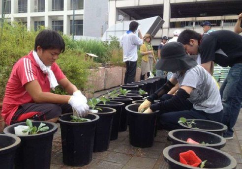 去る8月24日に丸栄百貨店の屋上農園でプチヴェールの定植を実施しました。プチヴェールとはケールと芽キャベツを掛け合わせたF1品種で非常に栄養価が高い冬野菜です。苗の状態で買い付けし、8月末に苗ポット等に定植すると、冬にきれいなルージュやホワイトの野菜になります。名商大は「NUCBフロンティア力育成講座」の学生が昨夏以来、JA等と協力して特産品化に取り組んできています。