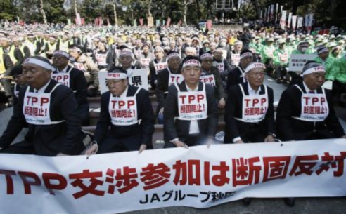 日本は、2013年3月に環太平洋パートナーシップ協定(TPP:Trans-Pacific Partnership Agreement)の交渉参加を表明し、その後、米国を除く11ヵ国によるTPP11に正式に署名しました。これにより従来は海外からの輸入品に対して高い関税をかけて保護して来た農産物5品目(コメ、麦、牛肉、乳製品、サトウキビなどの甘味資源作物)の関税も撤廃されることになりましたが、海外からより安価な農産物が輸入されることに不安を抱いた農業団体の反対運動が各地で展開されました。