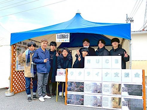 名古屋商科大学は、大学の紹介として「SDGsサークル」と「国際ボランティアサークル」の活動紹介展示、小さなこどたちにむけた駄菓子の掴み取りゲームを行いました。また、学生会執行部が本年度継続して取り組んできた「ウクライナ支援活動」として支援金の募金活動を同時に行い、ウクライナの現状と支援の必要性を伝えながら、多くの皆様から暖かいご支援を賜りました。