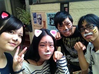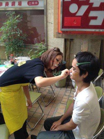瀬戸の招き猫まつりでは、こうやって顔にペイントをするんですょー!!