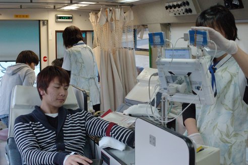 学生会執行部のメンバーと赤十字社の職員の方々の呼びかけにより、多数の学生・教職員にご協力いただき、様々な血液型の血液を採取する事が出来ました。