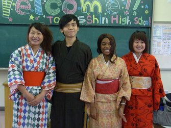 交換留学生 日進高校との交流会 2010/11/24 Wed 本学交換留学生と日進高校の生徒さんたちとの交流会が開催されました。 高校生の皆さんと一緒に、着付け、そば打ち、茶道の体験し、楽しく日本文化の理解を深めることができました。 貴重な体験をたくさんの生徒さんとする事により、友情も生まれたようです。