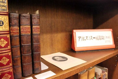 グーテンベルクによる聖書の一葉、アダム・スミス「国富論」、マルクス「資本論」、ホッブズ「リヴァイアサン」、ミルトン「失楽園」の各初版をはじめ、 15〜19世紀の経済学・英文学など貴重書約7,000冊を収蔵しています。その他、レーニンによるパンフレットなどロシア革命に関する資料や、ピカソ、ロートレックの絵画など現代作品も展示されています。