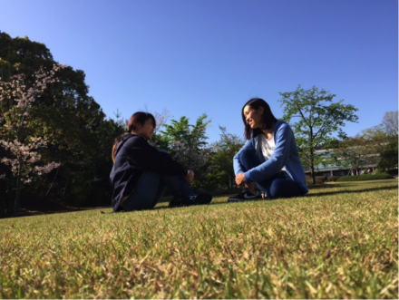 普段大学内は生徒で溢れかえっています。しかし自分の講義の空き時間に大学を歩くと生徒がいません。その時間に広い大学内で散歩をしたりする時間が好きです。大学を見渡すと植物が沢山あり森林があるのでとても気が休まります。名古屋商科大学はとても広く車の音などの騒音や雑音も聞こえないので心地よい空気が流れています。いつも人で溢れかえっている場所に誰もいなく大学の校舎から見る景色とテニスコートから見える夕日が私のほっこりできる瞬間です。