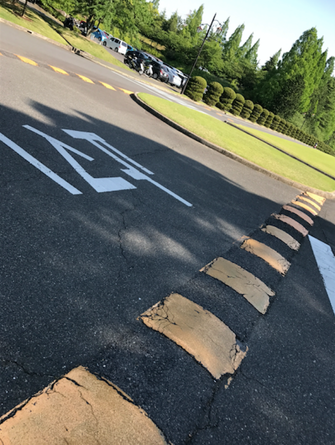 私たちは形から見て『かまぼこ』と呼んでいます。この「かまぼこ」が敷地内のどの道にも設置してあるため事故は限りなく0に近いです。なぜなら、この突起により車は減速しないと運転ができないからです。
